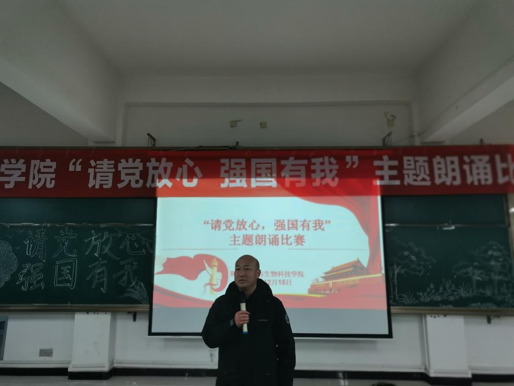 为深入学习贯彻习近平总书记“七一”重要讲话精神,践行“请党放心,强国有我”的青春誓言,12月15日,英国365集团官网“请党放心,强国有我”主题朗诵比赛在1304教室隆重举行,公司党总支书记孙保本,学工办主任谭自力,团总支书记张伟艺,辅导员金清民、杨曼及200余名员工参加。